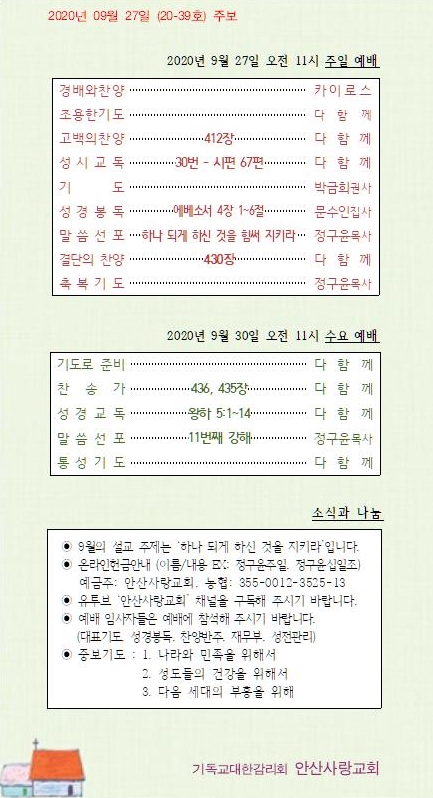20200927 교회소식